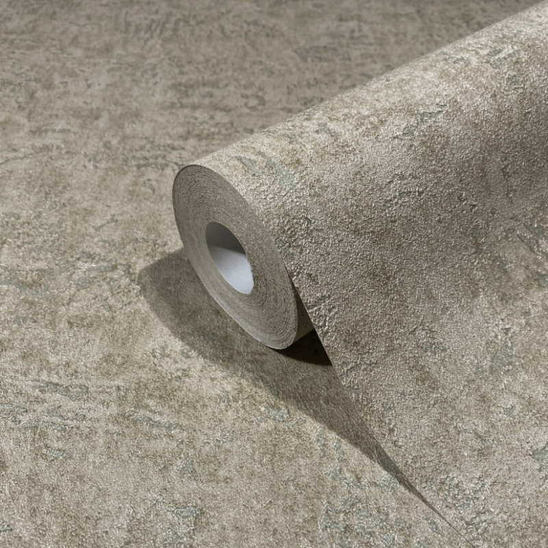De warme taupe tint van het behang creëert een rustige en serene sfeer, terwijl de subtiele structuur een vleugje diepte en textuur toevoegt. Het voelt alsof je je handen over zachte, fijne stoffen laat glijden, waardoor een gevoel van comfort en luxe ontstaat.
