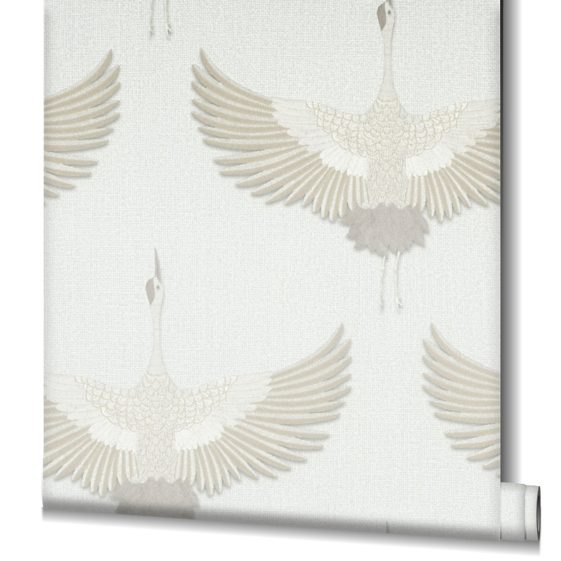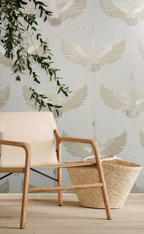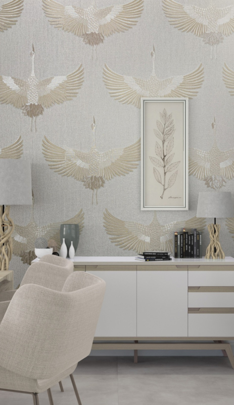 Dit beige behang met grote vogels op een textielstructuur ondergrond brengt een gevoel van betovering en verwondering in elke kamer van je huis. De zachte, neutrale tinten van het behang creëren een rustgevende ambiance, terwijl de grote vogels een gevoel van vrijheid en speelsheid toevoegen. Ze lijken bijna tot leven te komen, alsof ze rechtstreeks uit de natuur op je muren zijn geland.