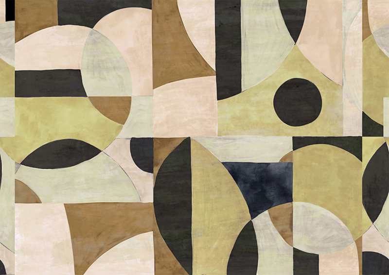 Nog een stap verder in de abstractie is het ontwerp Patina dat een ingewikkeld totaalbeeld aan kleurvlakken toont. Door het ontwerp uit te vergroten verkrijg je een prachtig monumentaal resultaat.