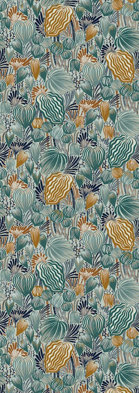 Pomona is de godin van de bosvruchten. Ze dient als inspiratie voor deze opvallende all-over van bladeren, bessen en organische vormen. Door cut-outs te combineren in verschillende lagen boven elkaar bekomen we een verrassende compositie. De tekening krijgt nog extra diepte door toevoeging van verschillende kleinere effecten.