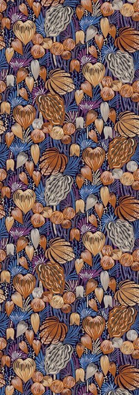 Pomona is de godin van de bosvruchten. Ze dient als inspiratie voor deze opvallende all-over van bladeren, bessen en organische vormen. Door cut-outs te combineren in verschillende lagen boven elkaar bekomen we een verrassende compositie. De tekening krijgt nog extra diepte door toevoeging van verschillende kleinere effecten.