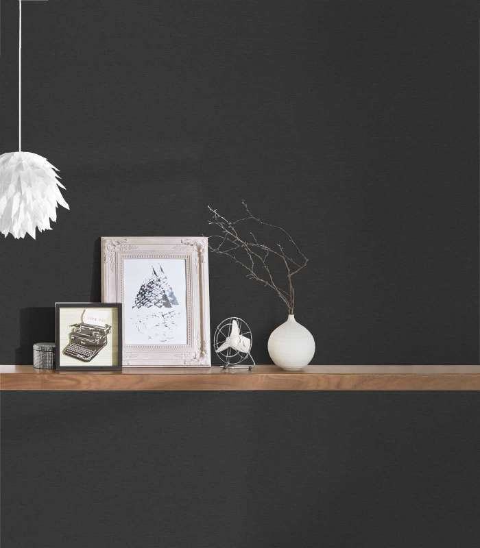 Ontdek de kracht van eenvoud met ons verbluffende behang met een lichte textielstructuur in tijdloos zwart. Laat je inspireren door de diepte en veelzijdigheid van deze kleur en transformeer je leefruimte tot een meesterwerk van ingetogen elegantie.