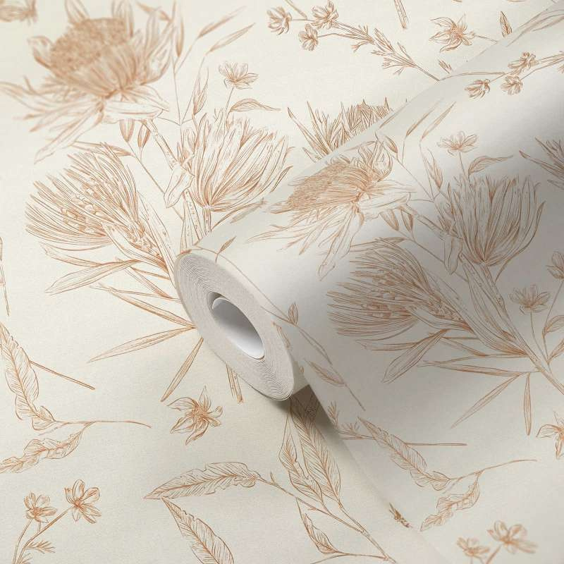 Laat je interieur baden in een warme gloed met ons verfijnde crèmekleurige behang, verrijkt met elegante bloemen in een rijke bruine tint. De harmonie tussen de zachte crème-achtergrond en de diepere bruine bloemen creëert een sfeer van ingetogen schoonheid en stijl.