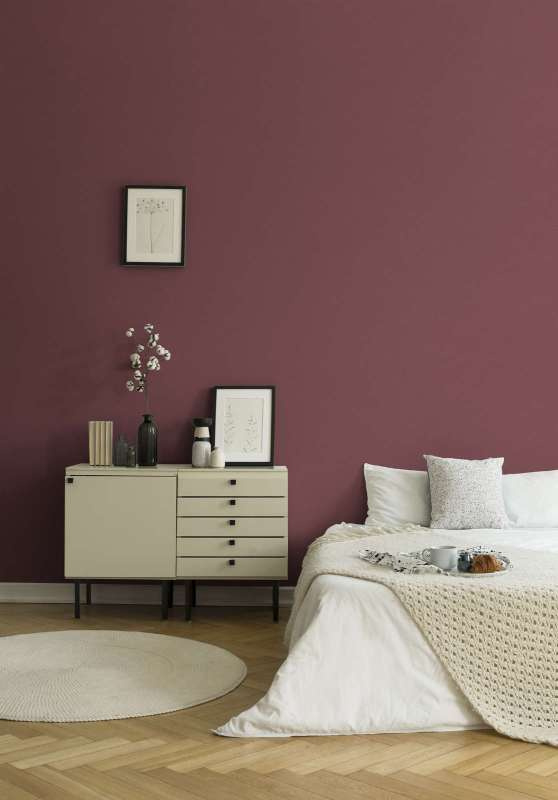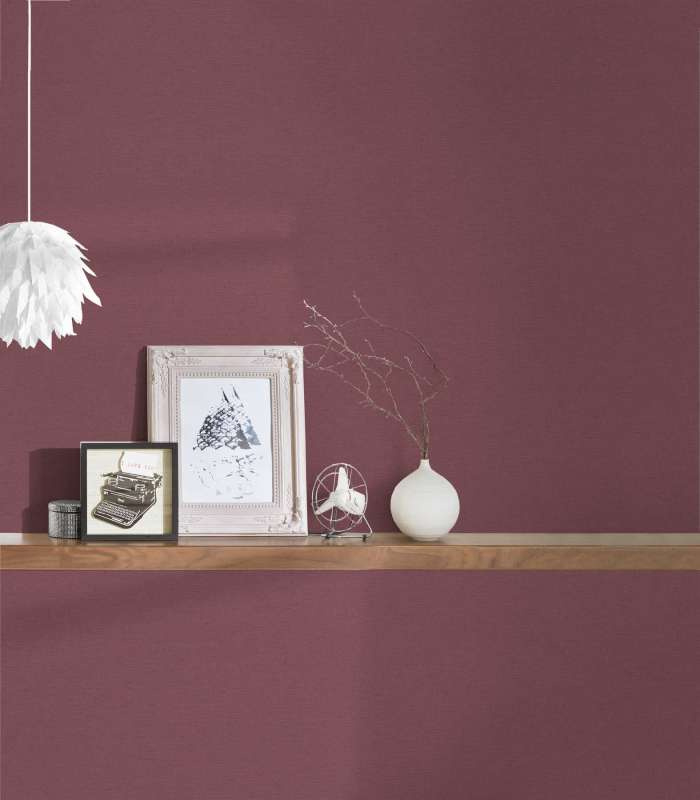 Prachtig behang met een subtiele textielstructuur in een betoverend bordeauxrode tint.