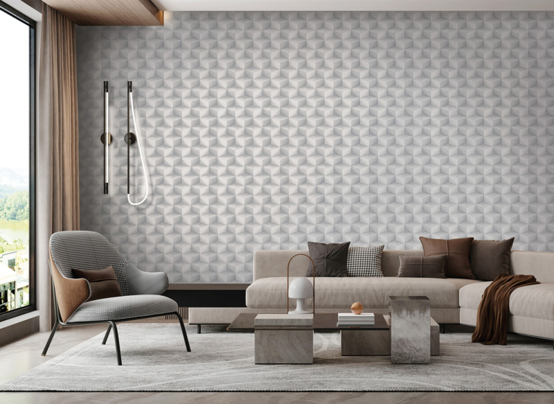 Dit grafische, iriserende behang met een 3D-effect in zilvergrijs is als een meesterwerk dat je muren tot leven brengt. Het grafische patroon voegt een moderne, dynamische uitstraling toe aan je interieur, terwijl het iriserende en 3D-effect een betoverende diepte en dimensie creëert die veranderen met het licht en de kijkhoek. Het zilvergrijze kleurenpalet straalt eigentijdse elegantie uit, terwijl het 3D-effect een gevoel van tastbare diepte toevoegt aan je ruimte.