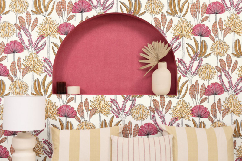 Maak een reis naar een van de beroemdste eilanden ter wereld met dit kenmerkende plantenontwerp met handgeschilderde details. Het is verkrijgbaar in 7 kleuren, waaronder één met een lichtgevende curryachtergrond en een andere waarin een gedurfd camel, marineblauw en oranje trio wordt gecombineerd. Het is onze favoriet uit de collectie!