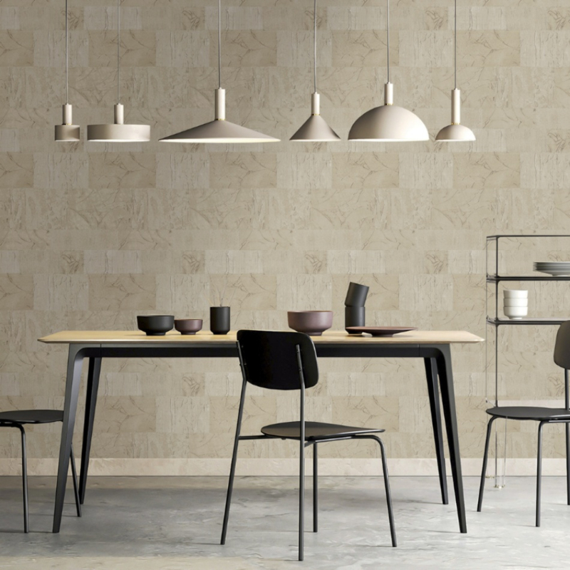 De beige achtergrond brengt een kalme en uitnodigende sfeer in elke ruimte, terwijl het gouden accent een vleugje glamour toevoegt, als zonnestralen die een gouden gloed werpen op een ongerept terrein. Laat je betoveren door de organische textuur van gesteente, waarbij elke ader en elk reliëf een verhaal vertelt van de tijdloze pracht van de natuur.