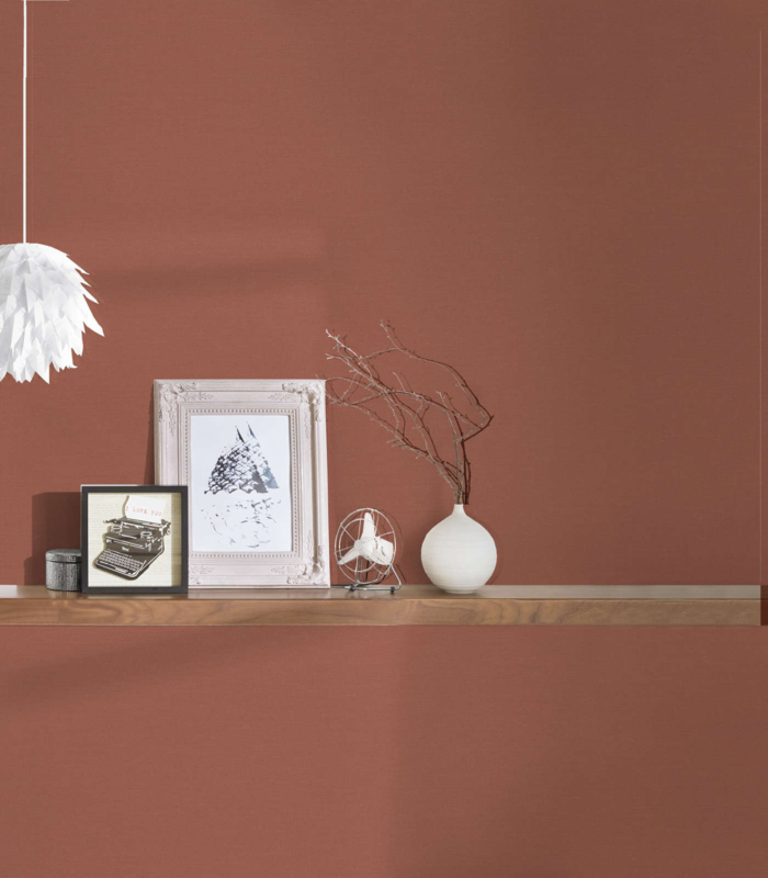 Ontdek de warme en tijdloze elegantie van dit bruine behang, doordrenkt met een subtiele fijne textielstructuur.