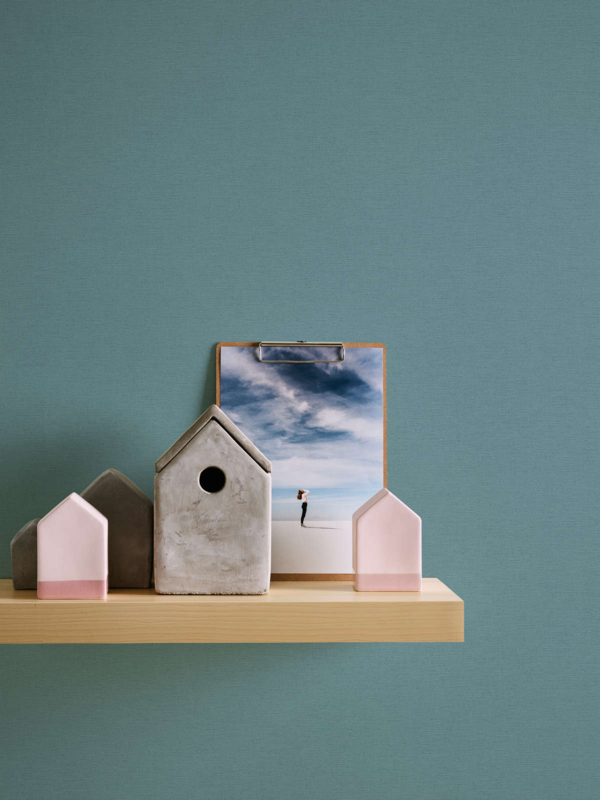 Duik in de serene schoonheid van dit behang met een subtiele linnen structuur in een kalme en verfijnde blauwe tint. Laat je meenemen op een reis van rust en elegantie terwijl deze tijdloze kleur je muren omhult met een zachte, rustgevende sfeer.