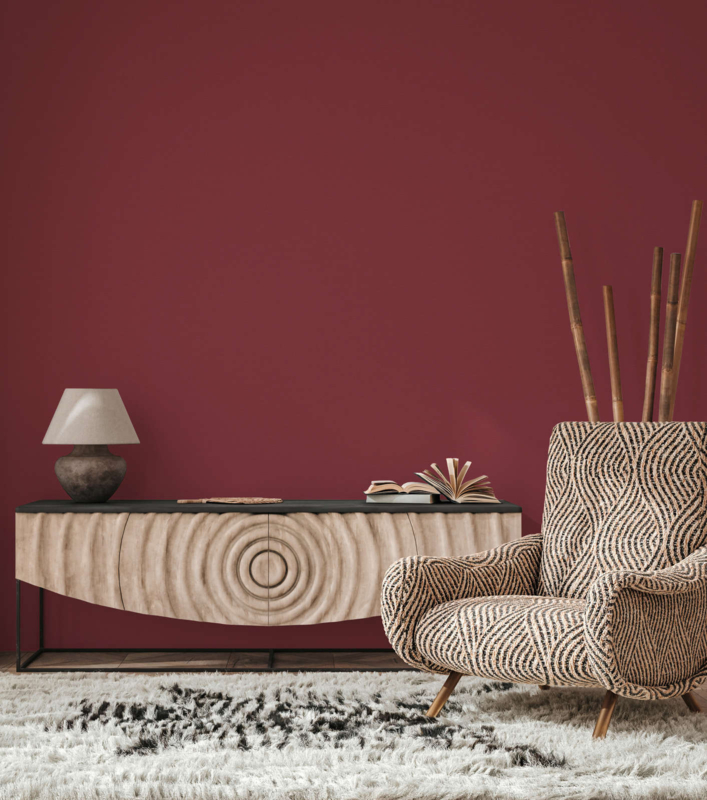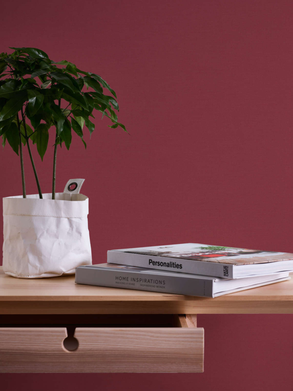 De diepe, rijke rode kleur brengt een krachtig en toch verfijnd element in je interieur. Of je nu op zoek bent naar een opvallend accent in een moderne ruimte of een warme, uitnodigende sfeer wilt creëren in een meer klassieke setting, dit behang geeft karakter aan elke kamer.