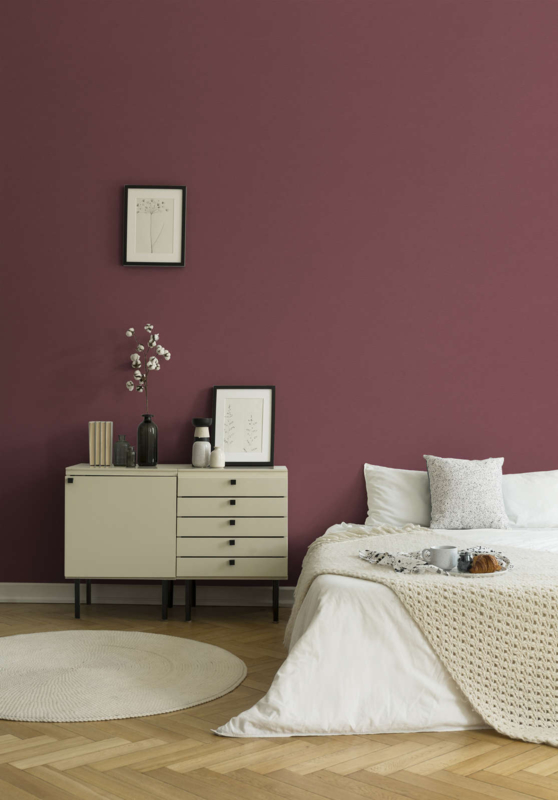 De bordeauxrode kleur ademt een sfeer van luxe en passie, waardoor elke ruimte wordt getransformeerd tot een uitnodigende oase van verfijning. De subtiele linnen structuur voegt een tastbare diepte toe, waardoor je interieur een tijdloze en artistieke uitstraling krijgt.