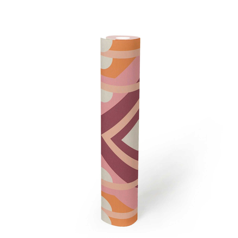 Stap terug in de tijd met dit opvallende behang met een groot, geometrisch retro patroon dat een krachtige dosis vintage flair toevoegt aan elke ruimte.