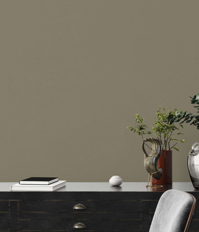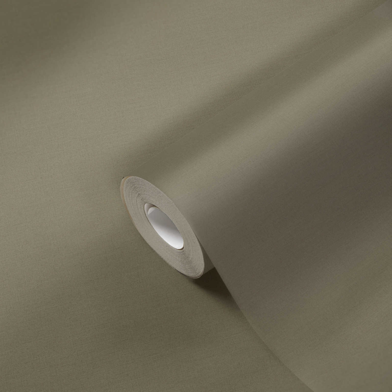 Betreed een wereld van subtiele schoonheid met dit behang, waar zachte linnen structuren samensmelten met een rustgevende olijfgroene tint.