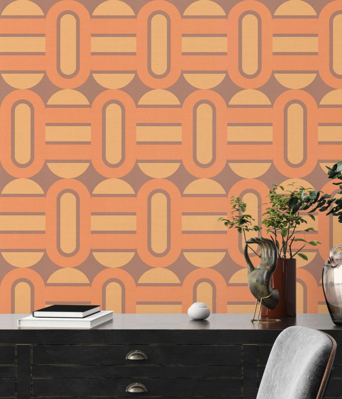 Laat je omhullen door de opvallende retro vibes die dit behang uitstraalt. De gedurfde patronen, geïnspireerd door vervlogen decennia, vormen een levendig kunstwerk op je muren en brengen een speelse en dynamische energie in elke kamer.