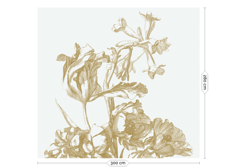 Voor dit behang hebben de gegraveerde bloemen letterlijk een gouden randje gekregen, wat een grandioos effect geeft. De gouden bloemen knallen van de muur af. Verkrijgbaar in diverse prints en kleuren.