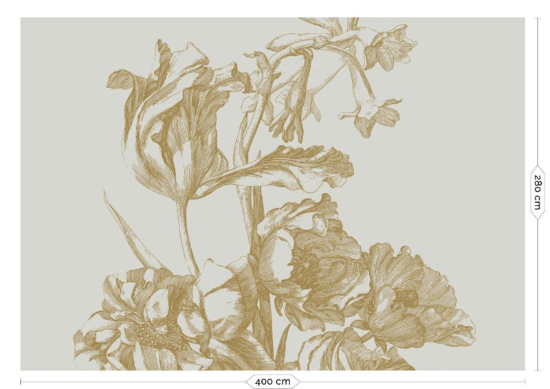 Voor dit behang hebben de gegraveerde bloemen letterlijk een gouden randje gekregen, wat een grandioos effect geeft. De gouden bloemen knallen van de muur af. Verkrijgbaar in diverse prints en kleuren.