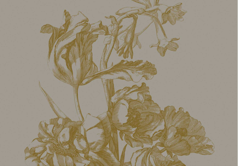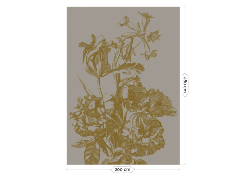 Voor dit behang hebben de gegraveerde bloemen letterlijk een gouden randje gekregen, wat een grandioos effect geeft. De gouden bloemen knallen van de muur af. Verkrijgbaar in diverse prints en kleuren.
