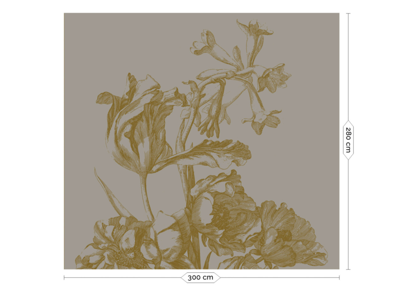 Voor dit behang hebben de gegraveerde bloemen letterlijk een gouden randje gekregen, wat een grandioos effect geeft. De gouden bloemen knallen van de muur af. Verkrijgbaar in diverse prints en kleuren.