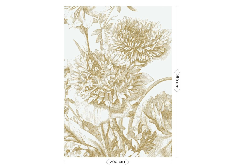Voor dit behang hebben de gegraveerde bloemen letterlijk een gouden randje gekregen, wat een grandioos effect geeft. De gouden bloemen knallen van de muur af. Verkrijgbaar in diverse prints en kleuren.