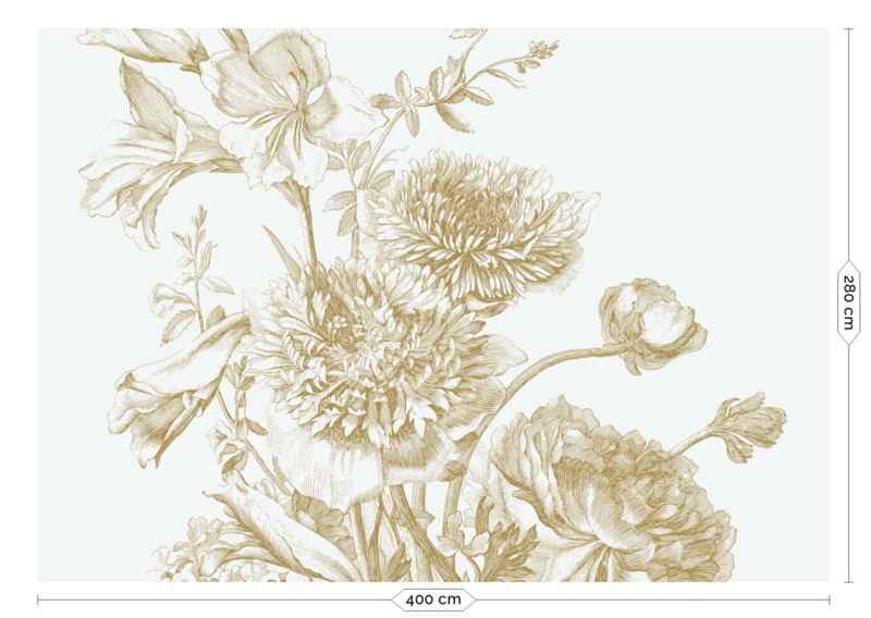 Voor dit behang hebben de gegraveerde bloemen letterlijk een gouden randje gekregen, wat een grandioos effect geeft. De gouden bloemen knallen van de muur af. Verkrijgbaar in diverse prints en kleuren.