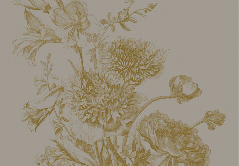 Voor dit behang hebben de gegraveerde bloemen letterlijk een gouden randje gekregen, wat een grandioos effect geeft. De gouden bloemen knallen van de muur af. Verkrijgbaar in diverse prints en kleuren.