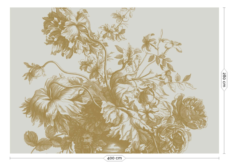 Voor dit behang hebben de gegraveerde bloemen letterlijk een gouden randje gekregen, wat een grandioos effect geeft. De gouden bloemen knallen van de muur af. Verkrijgbaar in diverse prints en kleuren.
