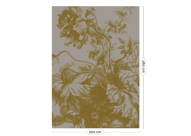 Voor dit behang hebben de gegraveerde bloemen letterlijk een gouden randje gekregen, wat een grandioos effect geeft. De gouden bloemen knallen van de muur af. Verkrijgbaar in diverse prints en kleuren.