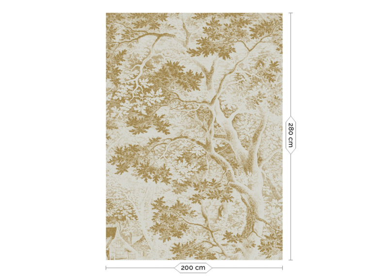 Dit gouden behang is geïnspireerd door antieke landschapgravures. De verfijnde tekening creëert diepte, waardoor jouw kamer een ruimtelijker gevoel krijgt. Voeg een vleugje goud aan de muur toe en geef jouw interieur een extra dosis allure.