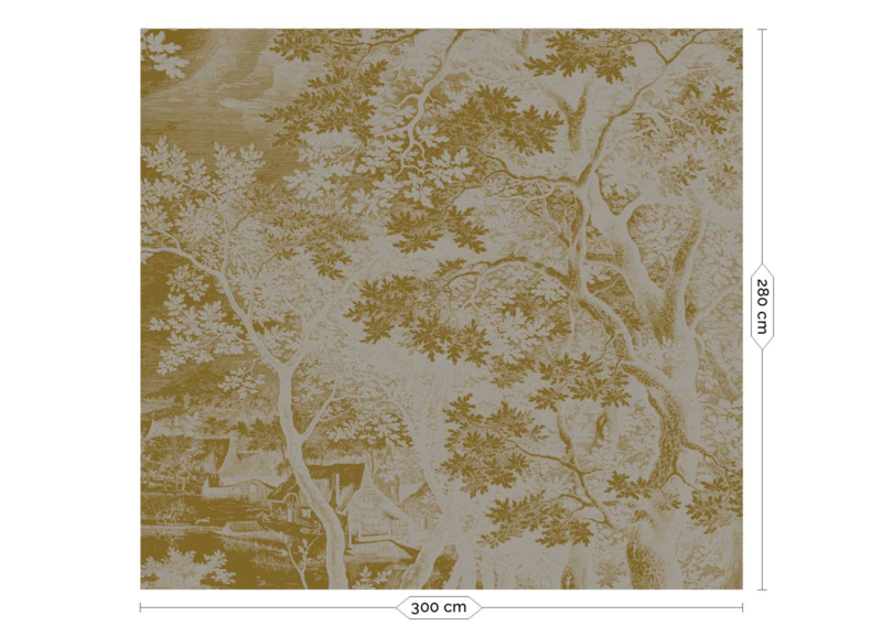 Dit gouden behang is geïnspireerd door antieke landschapgravures. De verfijnde tekening creëert diepte, waardoor jouw kamer een ruimtelijker gevoel krijgt. Voeg een vleugje goud aan de muur toe en geef jouw interieur een extra dosis allure.