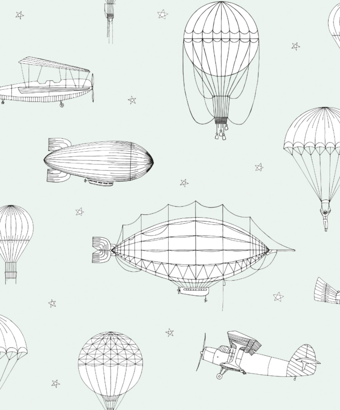 Creëer een ruimte waar de kinderkamer wordt omgetoverd tot een hemel van verbeelding, waar getekende vliegtuigen en luchtvaarttoestellen de bewakers zijn van eindeloze dromen en speelse momenten.