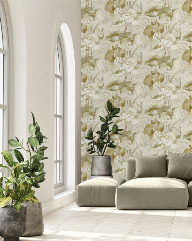 Duik in de wereld van behangpatroon Waterlily, met reusachtige bloemen en weelderige bladeren die je muur omtoveren tot een betoverende plek.