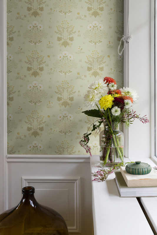 Het Edla-patroon combineert het madeliefje, Närke's guldenroede, veldbessen van Norrbotten en Ångermanlands stiefmoederviooltje in harmonie. Edla haalt haar inspiratie uit open vlaktes, groen gras en ontspannen zomerdagen.