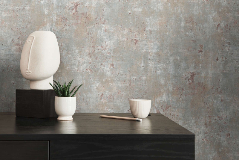 Geef je kamer een stoere en industriële uitstraling met dit betoonlook behang.