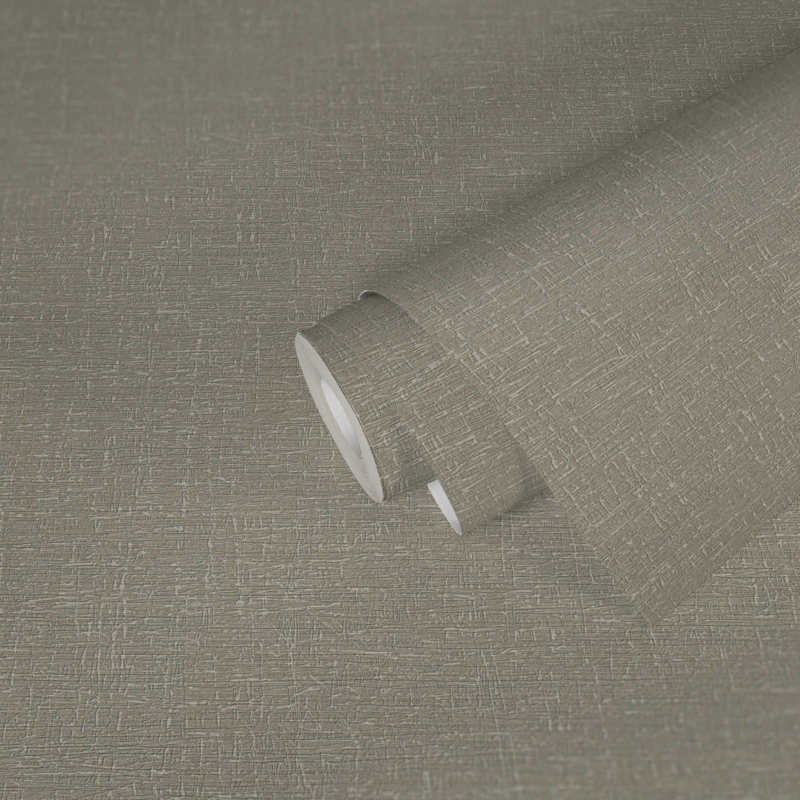 Creëer een eigentijdse en serene atmosfeer in je ruimte met grijs behang voorzien van een fijne structuur.