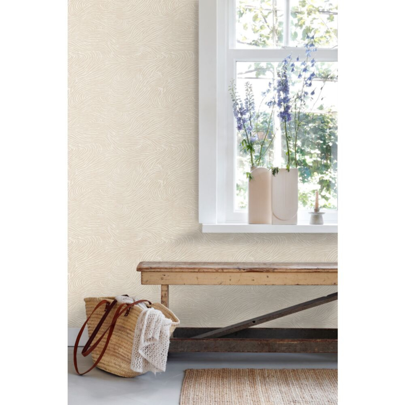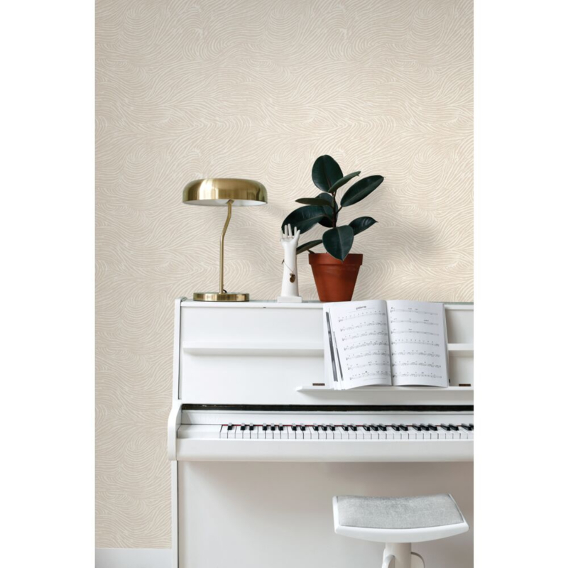 Dit moderne behang met 3D golvende lijnen in lichtbeige biedt de ideale basis voor een warm en gezellig interieur. Het laat zich niet alleen prachtig combineren met lichte kleuren en materialen, maar ook met donkere, natuurlijke tinten en houtafwerkingen.