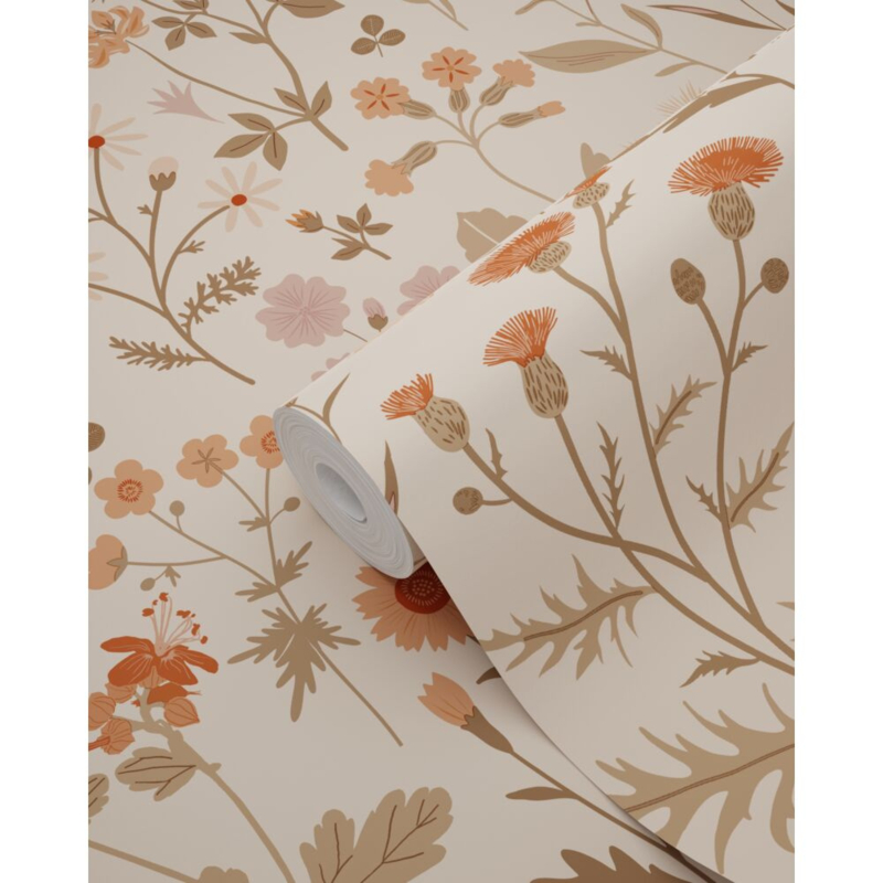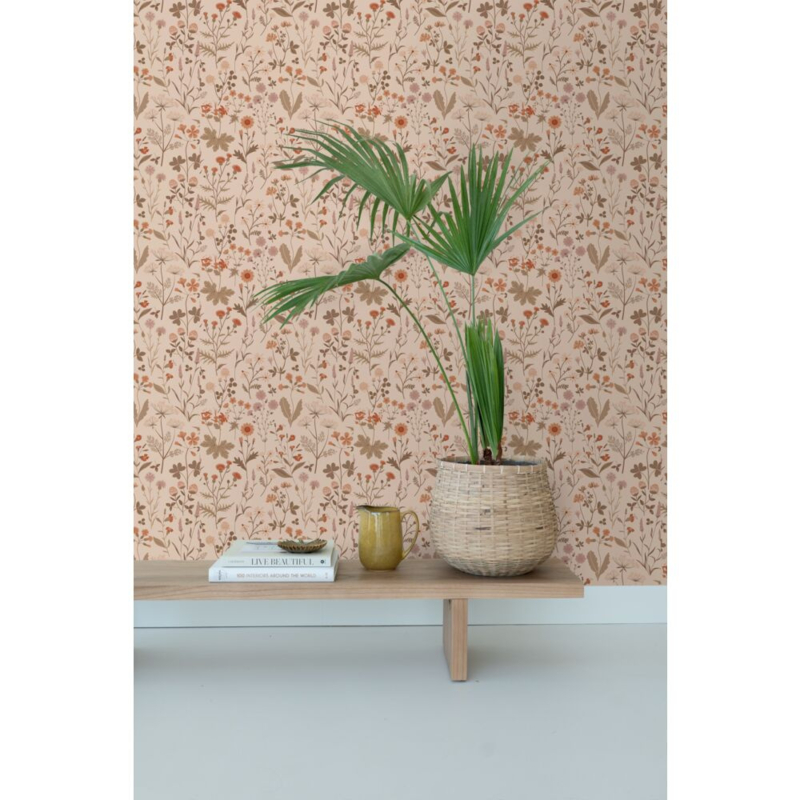 Dit trendy behang met veldbloemen in terracotta roze vormt de perfecte basis voor een warm en sfeervol interieur. Je kunt dit behang niet alleen heel mooi combineren met lichte kleuren en materialen, maar ook met donkere, natuurlijke tinten en houtsoorten.