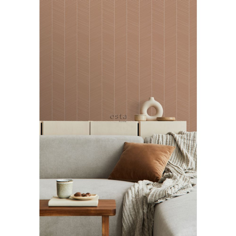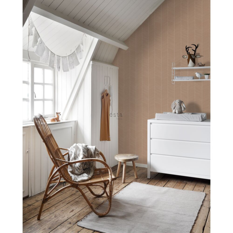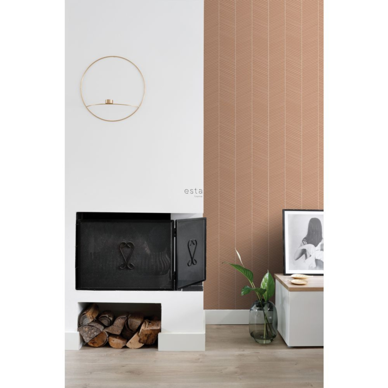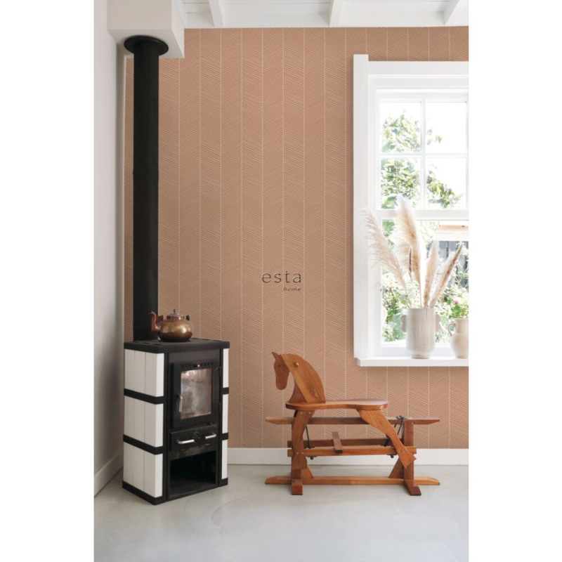 Dit sfeervolle behang met visgraat motief in licht terracotta past perfect bij een Scandinavische woonstijl. Met zachte kleuren, natuurlijke materialen en vintage meubels & accessoires haal je die typische Scandinavische look in huis. Een Scandinavisch interieur oogt licht en rustgevend, maar is tegelijkertijd ook warm en gezellig. Het is daarom niet gek dat de Scandinavische stijl wereldwijd zo ontzettend populair is.