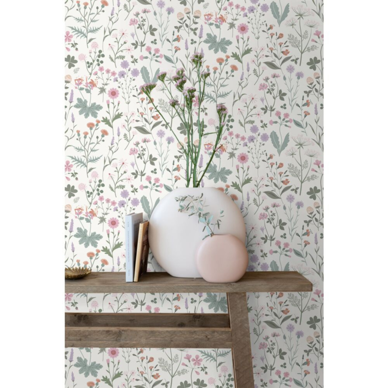 Dit charmante behang met veldbloemen in tinten van lila paars, roze en groen is ideaal voor het creëren van een Scandinavische woonstijl. Met zijn zachte kleuren, gebruik van natuurlijke materialen en de toevoeging van vintage meubels en accessoires, breng je moeiteloos de kenmerkende Scandinavische uitstraling in je interieur. Een Scandinavisch decor straalt een lichte en rustgevende sfeer uit, maar behoudt tegelijkertijd een warme en gezellige ambiance. Het is dan ook begrijpelijk dat de Scandinavische stijl wereldwijd zo enorm geliefd is.