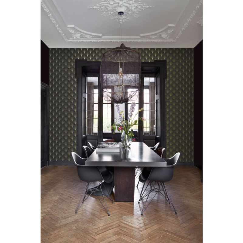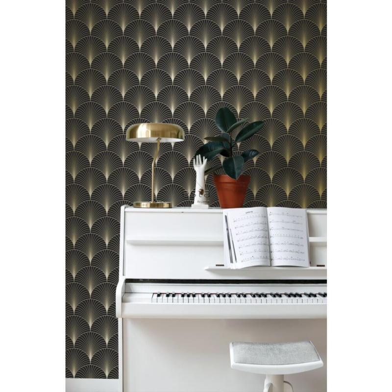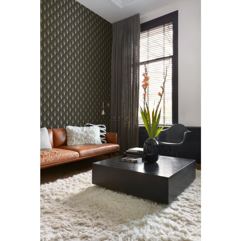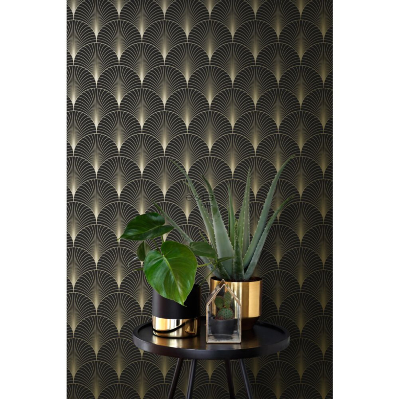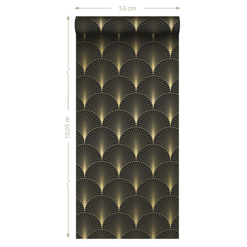 Voeg een gouden accent toe aan je interieur met dit prachtige behang, dat is voorzien van een art deco motief in goud. Dit behang geeft je muur een elegante uitstraling en creëert een luxueuze en warme sfeer in huis.
