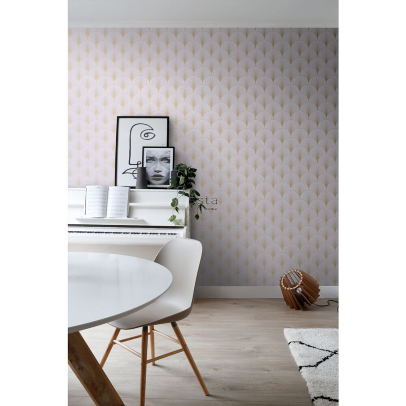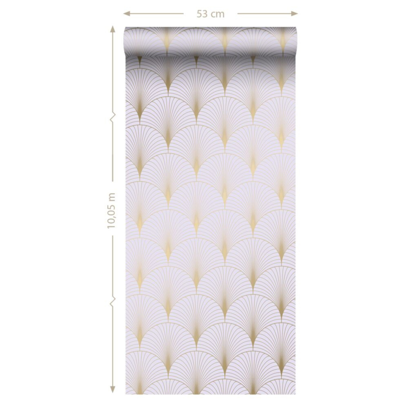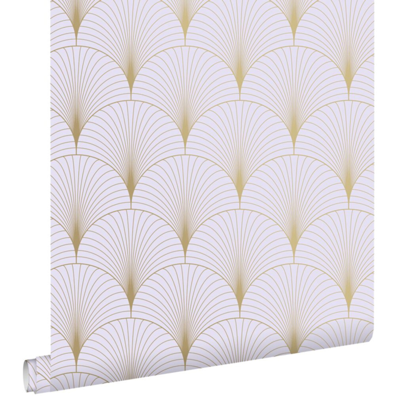 Voeg een gouden accent toe aan je interieur met dit prachtige behang, dat is voorzien van een art deco motief in goud. Dit behang geeft je muur een elegante uitstraling en creëert een luxueuze en warme sfeer in huis.