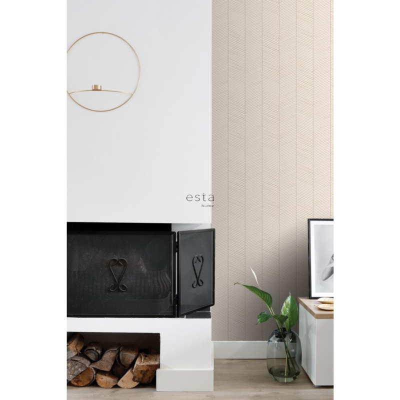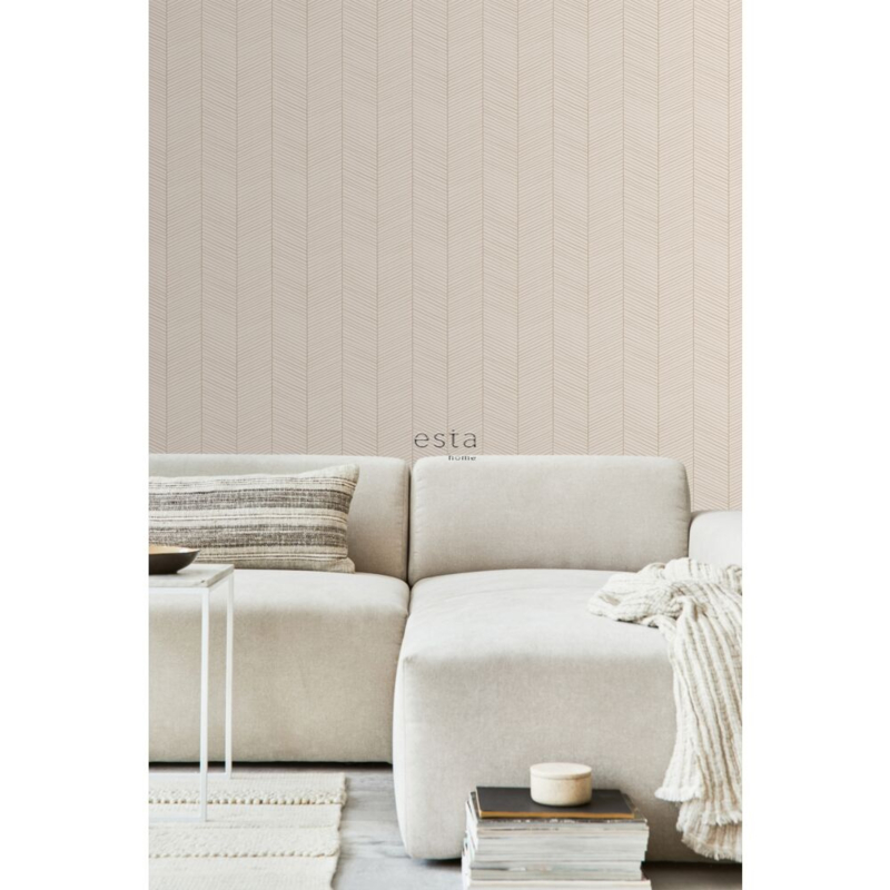 Dit eigentijdse behang met een visgraatmotief in zandkleur en beige is de ideale ondergrond voor een warm en sfeervol interieur. Het laat zich niet alleen prachtig combineren met lichte kleuren en materialen, maar ook met donkere, natuurlijke tinten en diverse houtsoorten.