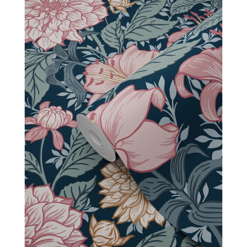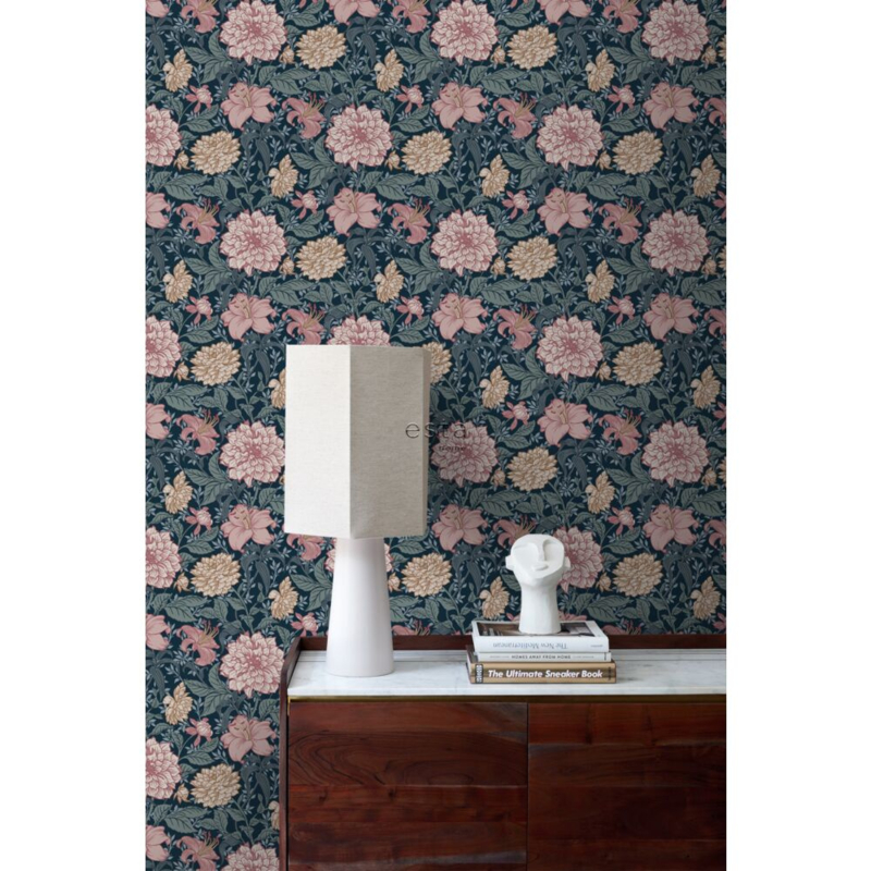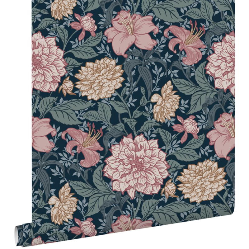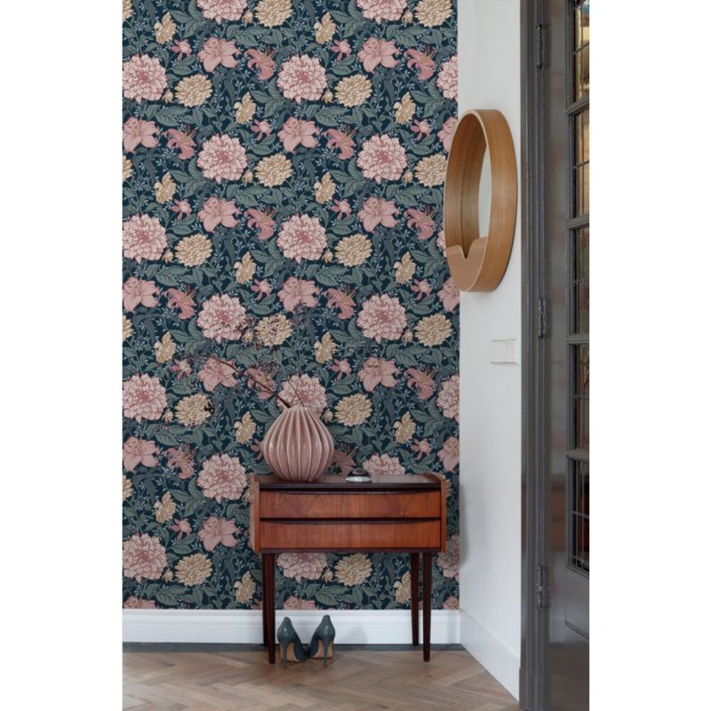 Creëer veel warmte en sfeer in je huis met dit behang voorzien van vintage bloemen in blauw en oudroze. Het patroon heeft een prachtige matte uitstraling en is ideaal voor het vormgeven van een stijlvolle, romantische accentmuur.