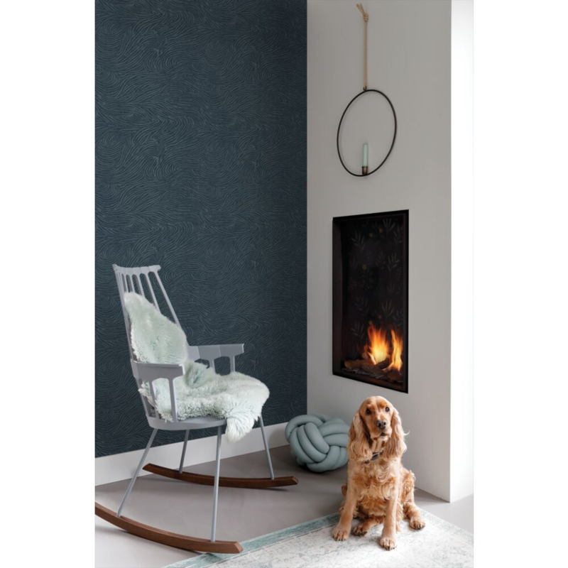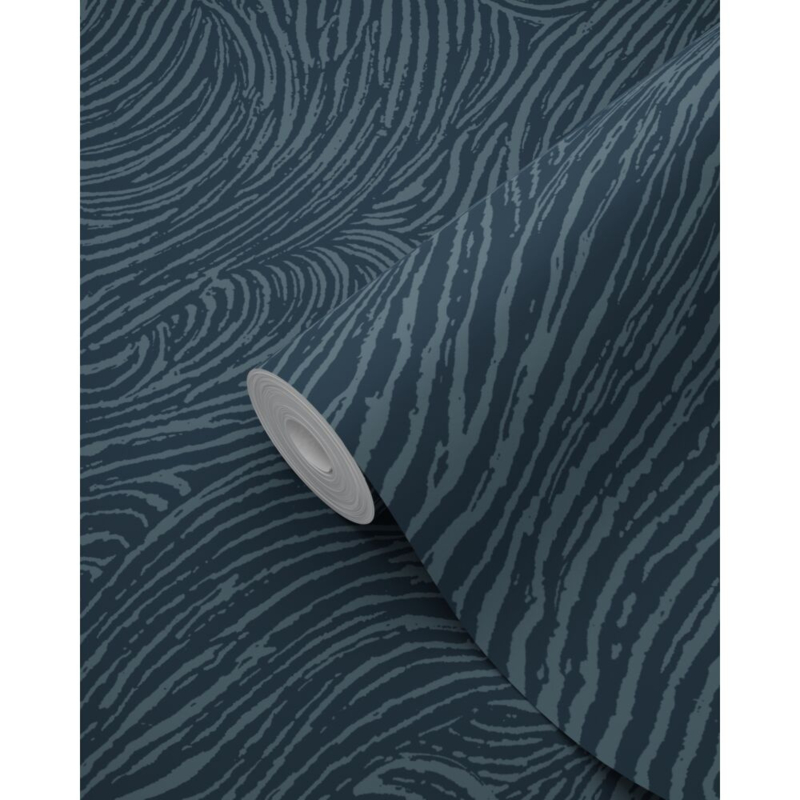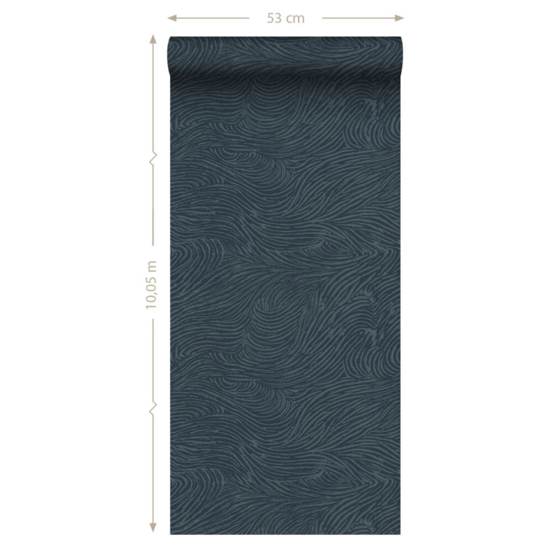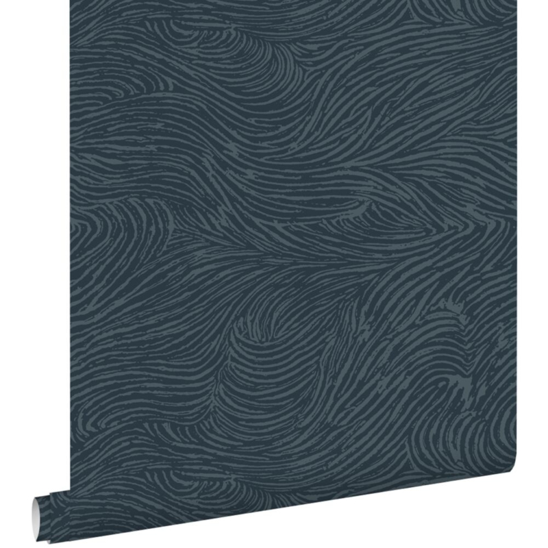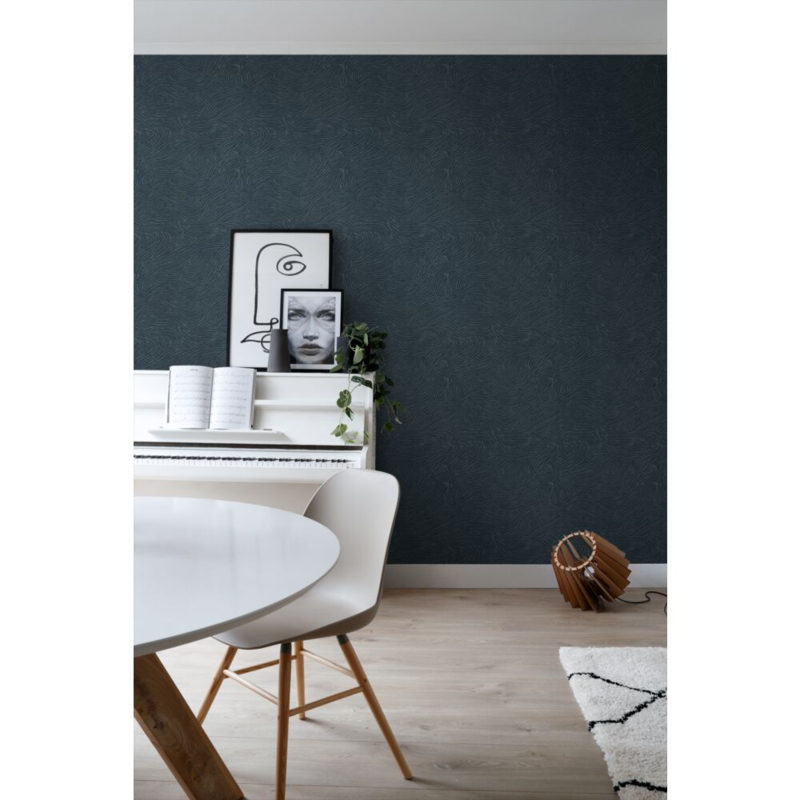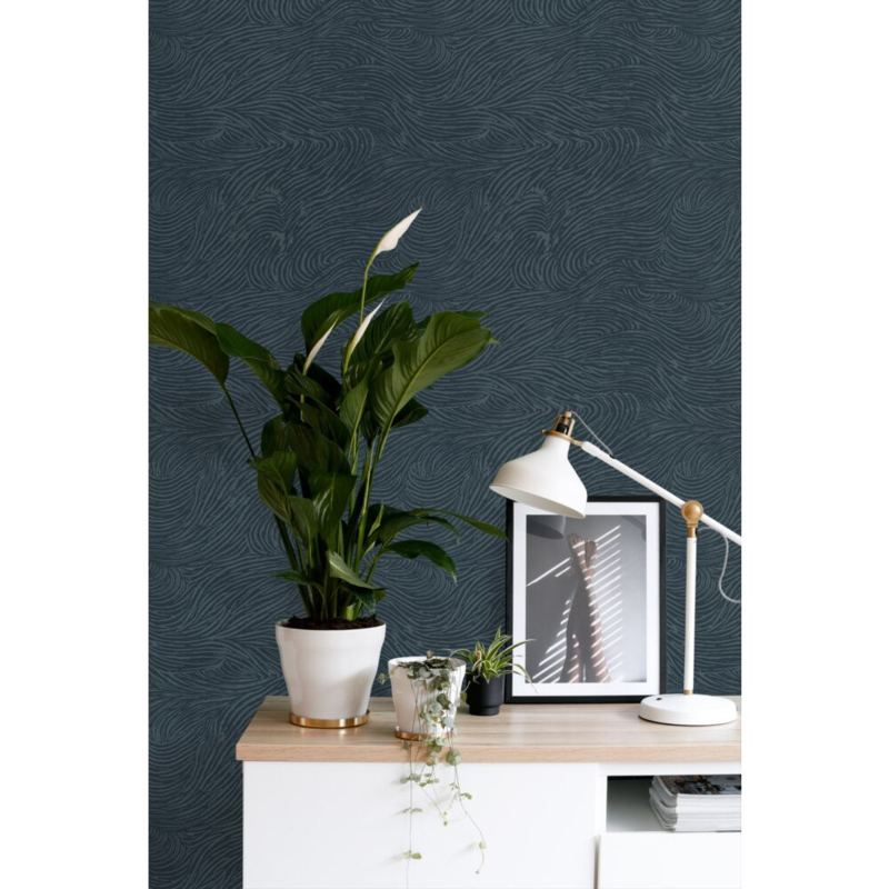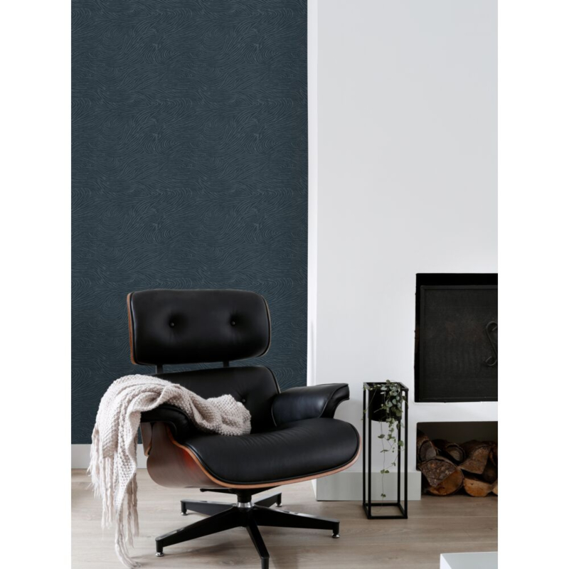 Dit eigentijdse behang met 3D-golvende lijnen in donkerblauw biedt de ideale basis voor een warm en sfeervol interieur. Het laat zich niet alleen prachtig combineren met lichte kleuren en materialen, maar ook met donkere, natuurlijke tinten en diverse houtsoorten.