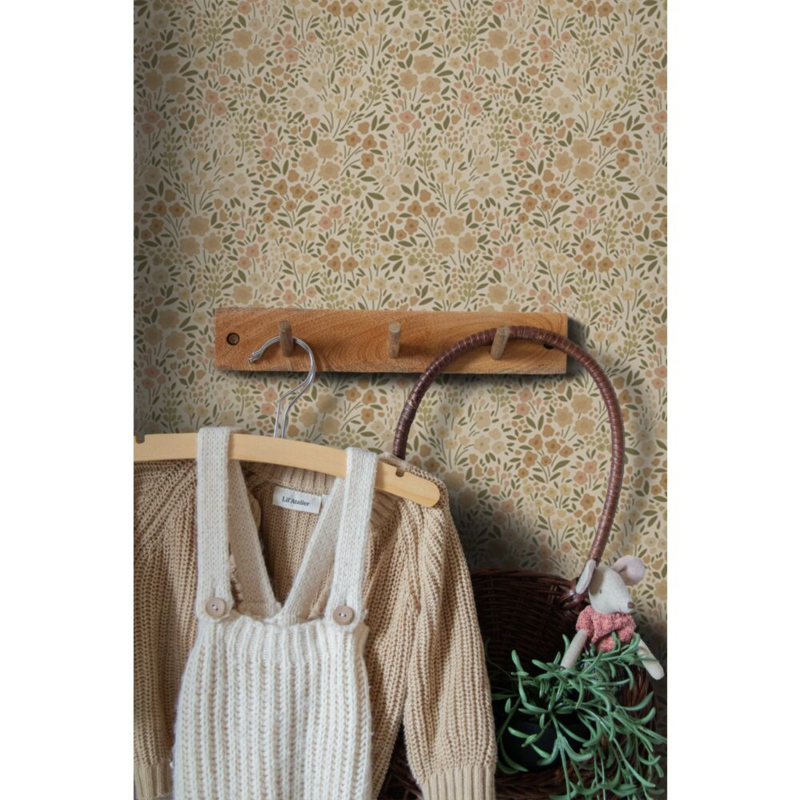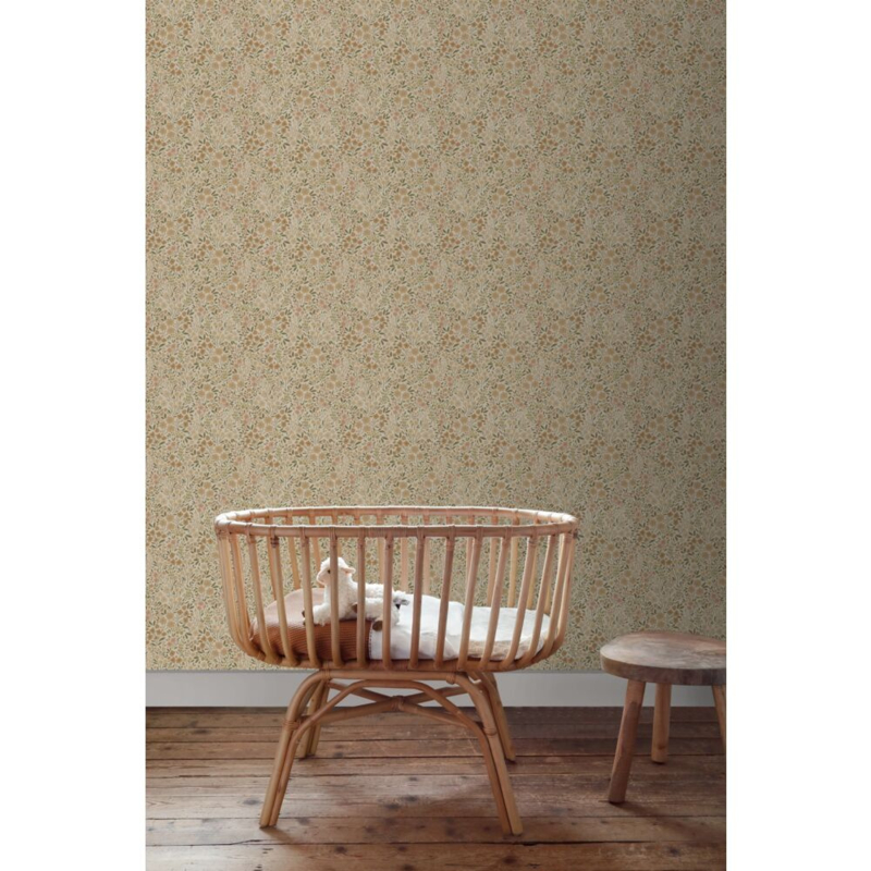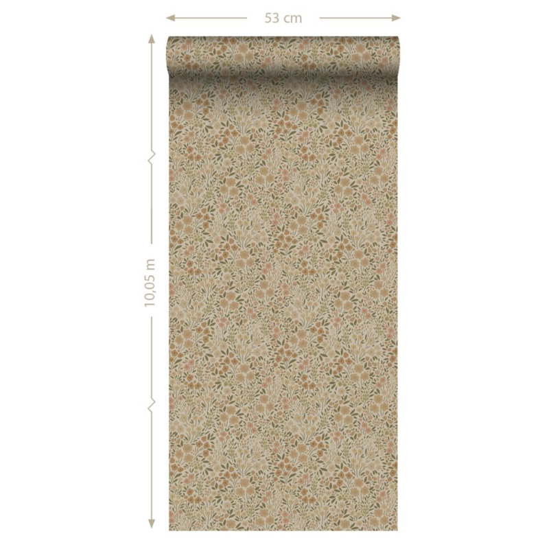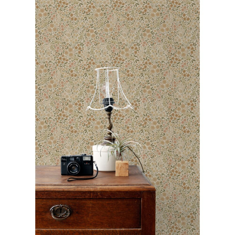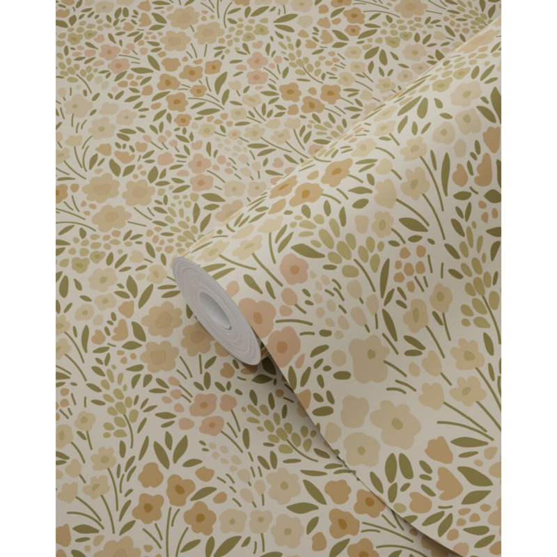 Elk meisjeshart zal sneller kloppen bij dit trendy behang met bloemetjes in beige. In combinatie met lichte kleuren, natuurlijke materialen en leuke accessoires kun je met dit behang een ontzettend leuke en gezellige meidenkamer creëren.