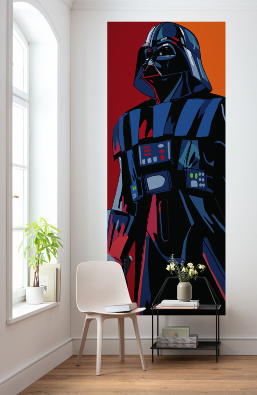 Wat een uitspraak! Dit enorme portret van Darth Vader is niet alleen indrukwekkend voor de fans. Het donkere pantser zorgt voor een sterk contrast met de witte muur.