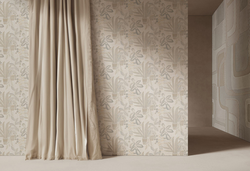 Elk bloemmotief straalt schoonheid en elegantie uit, terwijl de blokkenachtergrond voor een eigentijdse twist zorgt. De textielondergrond voegt een tactiele dimensie toe, waardoor een gevoel van comfort en gezelligheid ontstaat in elke ruimte.