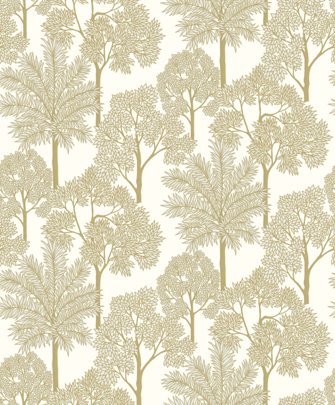 De zachte crèmekleur brengt rust, terwijl de gouden bomen een prachtig accent toevoegen. Dit behang is perfect voor elke kamer en creëert een warme, uitnodigende sfeer.