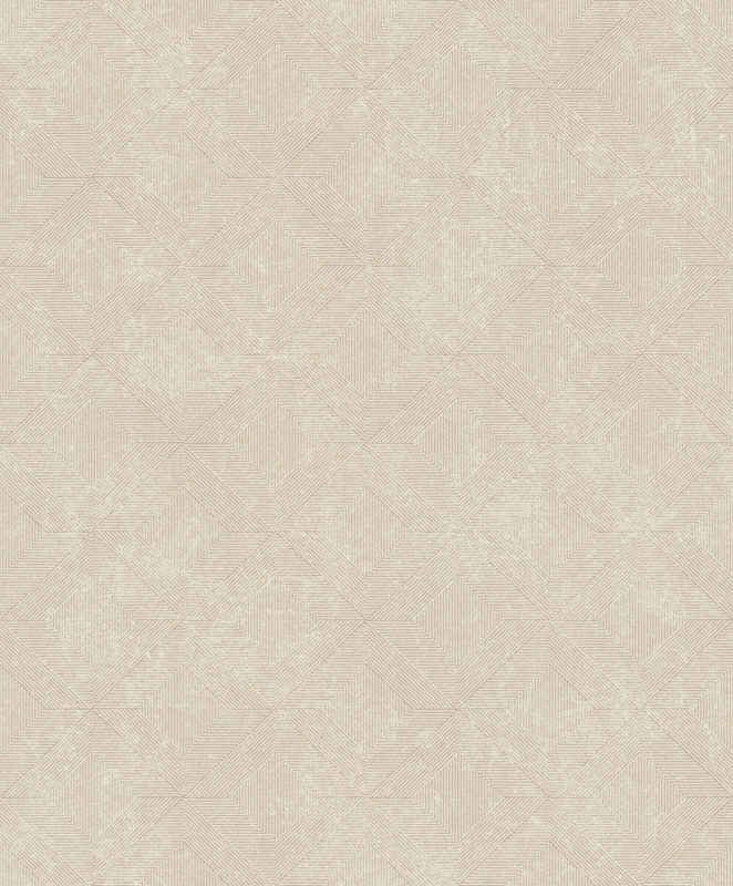 Het beige, warm en uitnodigend, creëert een serene en gebalanceerde basis. Het patroon, een dans van lijnen en vormen, trekt het oog zonder te overweldigen, een perfecte symfonie van moderniteit en klassieke charme. De gouden glinsteraccenten vangen het licht op een manier die de ruimte een dynamische diepte geeft, een constante maar subtiele verandering afhankelijk van het tijdstip en de verlichting.