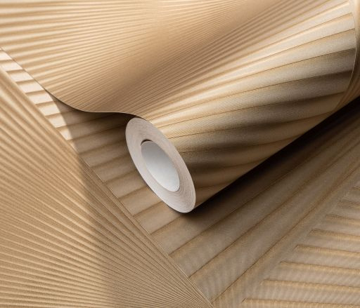 Het grootformaat patroonontwerp Gala ziet er met zijn 3D-waaierontwerp prachtig uit op elke muur. De driehoekige vormen creëren dynamische diepte, waardoor kamers een indrukwekkende dimensie en verfijning krijgen.