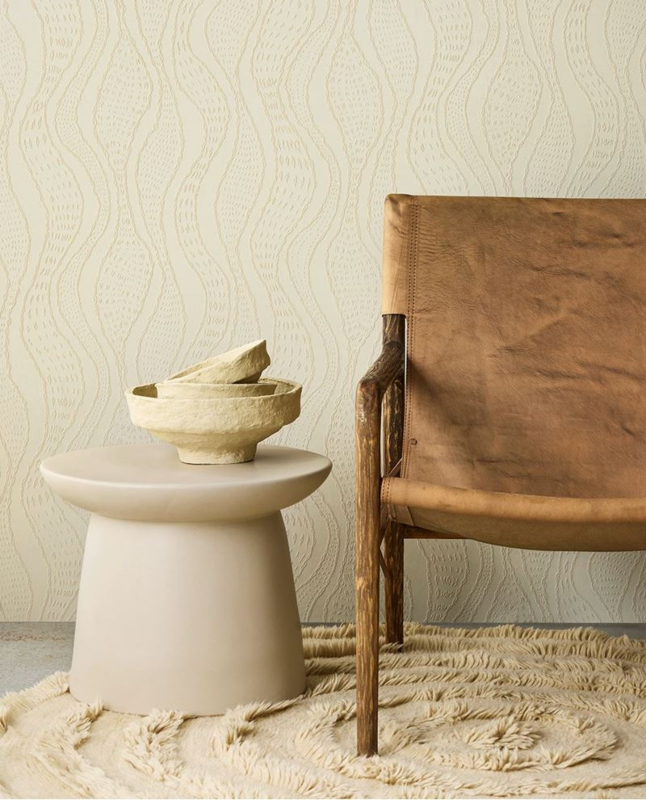 Een muur vol karakter: een boeiend, meanderend patroon slingert zich zachtjes voort in een mat, bijna kleiachtig reliëf. Het voelt aards en organisch aan, alsof de natuur zelf het ontwerp heeft gevormd. Dit behang trekt de aandacht zonder te overheersen, en nodigt uit om elke lijn met je ogen te volgen, terwijl de subtiele textuur een serene diepte aan de ruimte geeft. Een rustgevende achtergrond met een vleugje dynamiek.